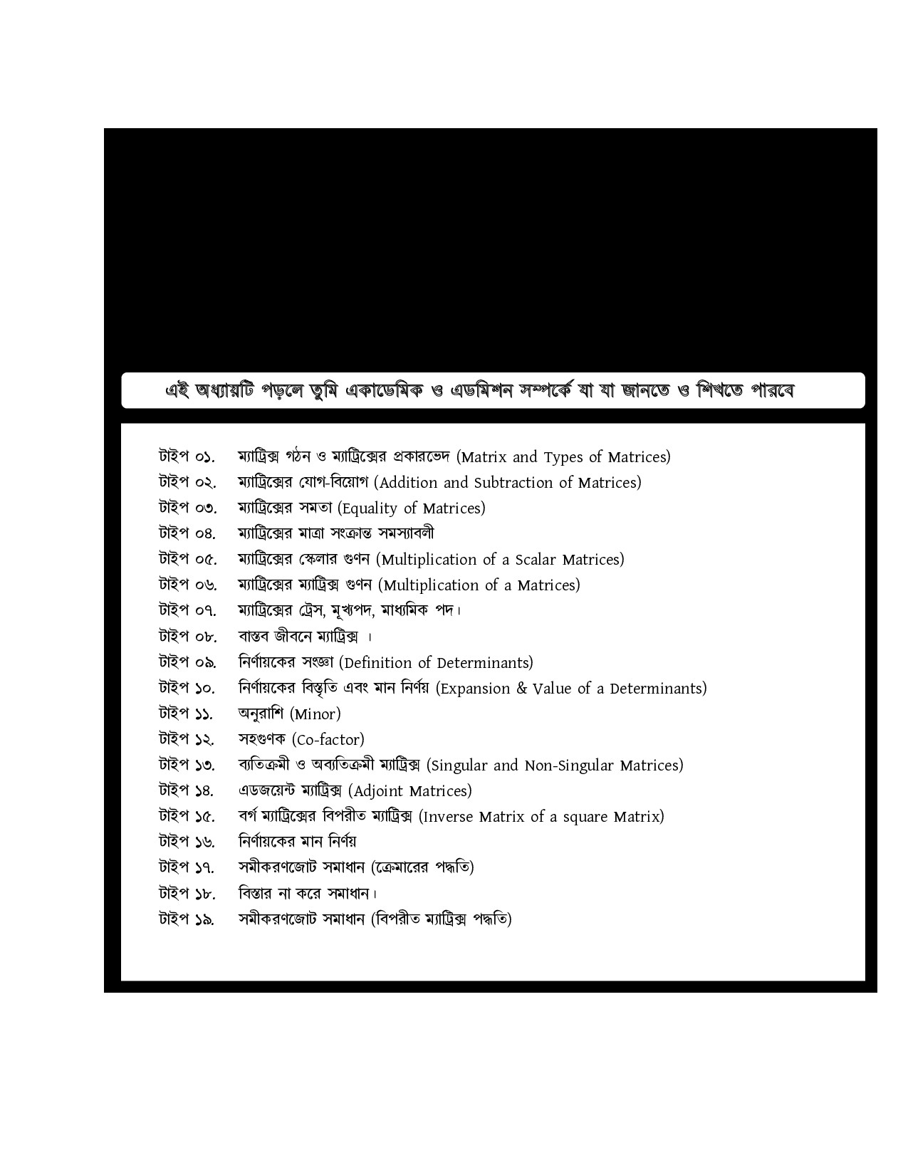 প্রথমত টাইপভিত্তিক আলোচনা গুলো পড়বে,শর্টকাট গুলো শিখবে ,উদাহরণ গুলো দেখবে। কিছু টাইপ থেকে এখনও বোর্ড পরীক্ষায় MCQ আসে নি সেগুলোও তোমাকে দেখতে হবে।